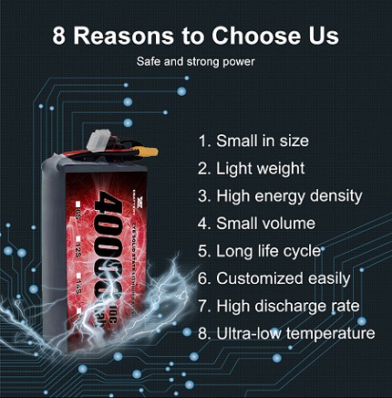 Τα πλεονεκτήματα των μπαταριών Lipo υψηλής χωρητικότητας περιλαμβάνουν: