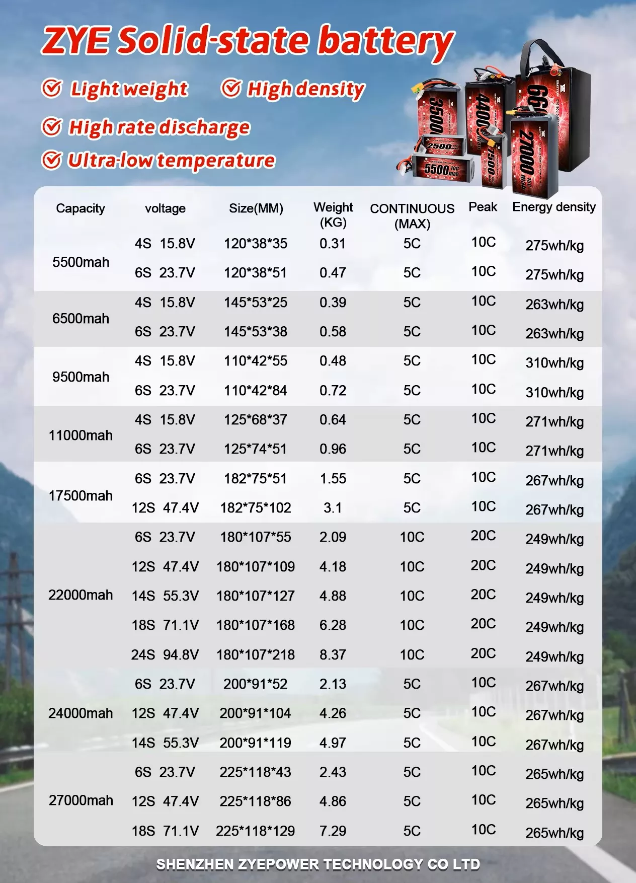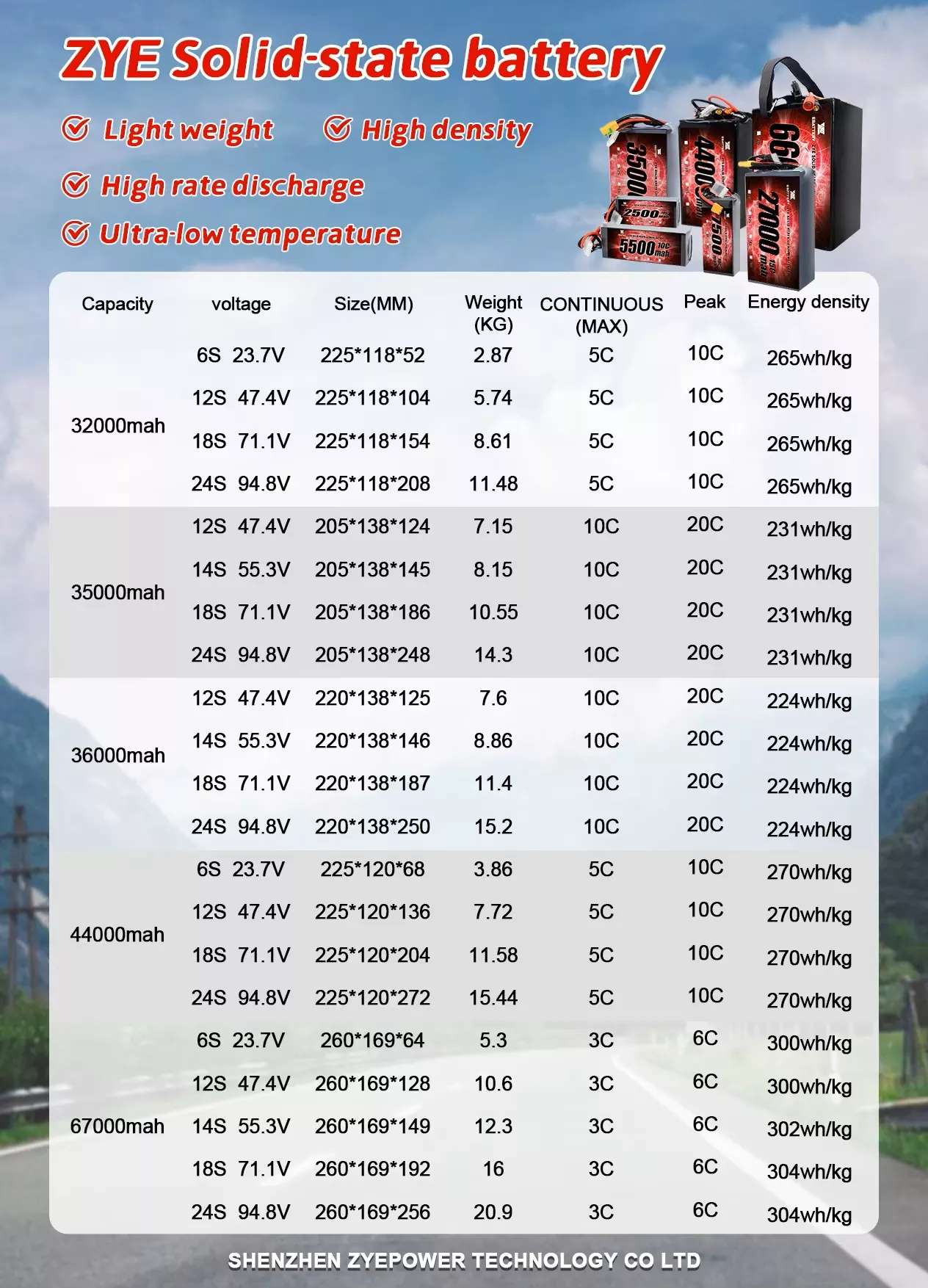 Ως πρωτότυπη κατασκευή για την παραγωγή μπαταρίας στερεάς κατάστασης LIHV 6S, η Zye Ebattery έχει παράσχει χιλιάδες μπαταρίες σε προμηθευτές με αεροσκάφη από όλο τον κόσμο. Η μπαταρία στερεάς κατάστασης LIHV 6S μπορεί να συναρμολογηθεί διαφορετικές ικανότητες σε 2s έως 24s από 2500mAh έως 132000mAh με υψηλή πυκνότητα ενέργειας. Για να είναι ένας αξιόπιστος προμηθευτής, το eBattery μπορεί να εγγυηθεί τη μηνιαία παραγωγή της μπαταρίας της στερεάς κατάστασης LIHV 6S και της φθηνότερης εργοστασιακής τιμής. Κάθε αίτημα από τους πελάτες απαντά εντός 24 ωρών, καλώς ήλθατε να επικοινωνήσετε μαζί μας με τις απαιτήσεις σας!